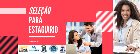A Rede UNA-SUS, estabelecida no âmbito da Universidade Federal da Bahia (UFBA), por meio de Termo de Cooperação da UFBA com a Secretaria de Gestão do Trabalho e da Educação na Saúde do Ministério da Saúde (SGTES/MS), torna público que estão abertas as inscrições para provimento de vagas de estágio não obrigatório, para atuar na Net-Escola de Saúde Coletiva ISC/UFBA.