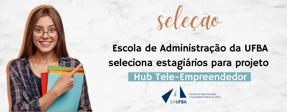 O presente edital tem como objetivo a seleção de estudantes de graduação para Programa de Estágio Não Obrigatório do Projeto Hub Tele-Empreendedor (projeto 200058) realizado pela Escola de Administração da UFBA. Estes estudantes podem ser do curso de Administração, Secretariado e correlatos.