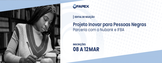 Escola de Administração da Universidade Federal da Bahia (EAUFBA), por intermédio da Fundação de Apoio à Pesquisa e à Extensão, em apoio ao Projeto no 220066, mediado pelo instrumento FAPEX/UFBA/IFBA no 364/2022 torna público o Edital referente à seleção de estagiários(as) para o projeto "Inovar para Pessoas Negras – Programa Nubank de Parceria com a UFBA e o IFBA”, nos termos da Lei 11.788, de 25 de setembro de 2008, que dispõe sobre os direitos e deveres dos estagiários(as), das instituições de ensino e da parte concedente para exercer as atividades profissionais de cunho pedagógico, bem como da Orientação Normativa No 4 de 04 de julho de 2014/SGP/MPOG, Orientação Normativa n° 04/2014, Nota Técnica n° 111/2014, Orientação Normativa n° 7/2008, Portaria n° 364, de 14 de maio de 2009 que estabelece orientação sobre a aceitação de pessoas estagiárias no âmbito da Administração Pública Federal direta, autárquica e fundacional e da Portaria da Fundação de Apoio à Pesquisa e Extensão (FAPEX) no 002/2018 contendo orientações no âmbito da Fundação de Apoio à Pesquisa e à Extensão.