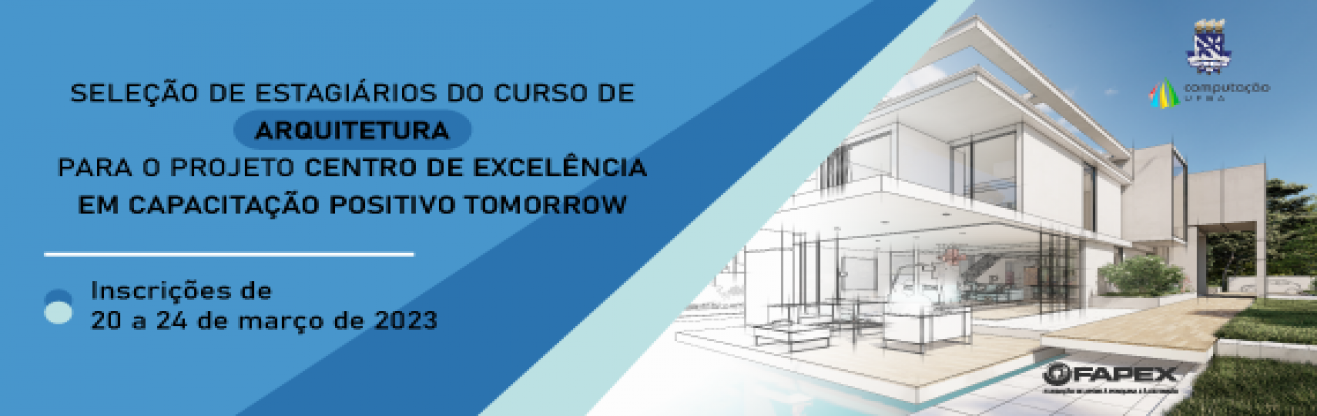 O Instituto de Computação, da Universidade Federal da Bahia, por intermédio da Fundação de Apoio à Pesquisa e à Extensão, torna público Edital referente à seleção estagiário, a partir do 4º semestre, do curso de Arquitetura, para o projeto Centro de excelência Positivo Tomorrow.