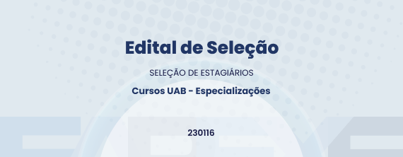 A UFRB por meio da SEAD, e por intermédio da FAPEX, em apoio ao projeto de nº 230116, mediado pelo instrumento FAPEX/UFRB n. 34/2023 torna público o edital referente à seleção de estagiários(as) para o projeto CURSOS UAB EDITAL 09/2022 – ESPECIALIZAÇÕES.