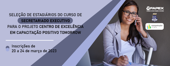 O Instituto de Computação, da Universidade Federal da Bahia, por intermédio da Fundação de Apoio à Pesquisa e à Extensão, torna público Edital referente à seleção estagiário, a partir do 4º semestre, do curso de Secretariado Executivo, para o projeto Centro de excelência Positivo Tomorrow”.