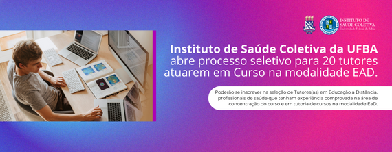 Instituto de Saúde Coletiva da UFBA abre processo seletivo para 20 tutores atuarem em Curso na modalidade EAD - ATUALIZADO em 26/09/2022